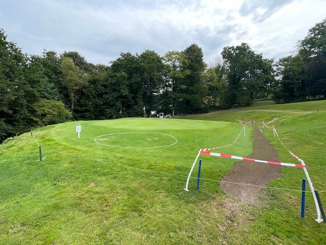 Wegen der Erneuerung der Drainage rund um das 18. Grün gilt dort bis auf Weiteres folgende Sonderplatzregel: