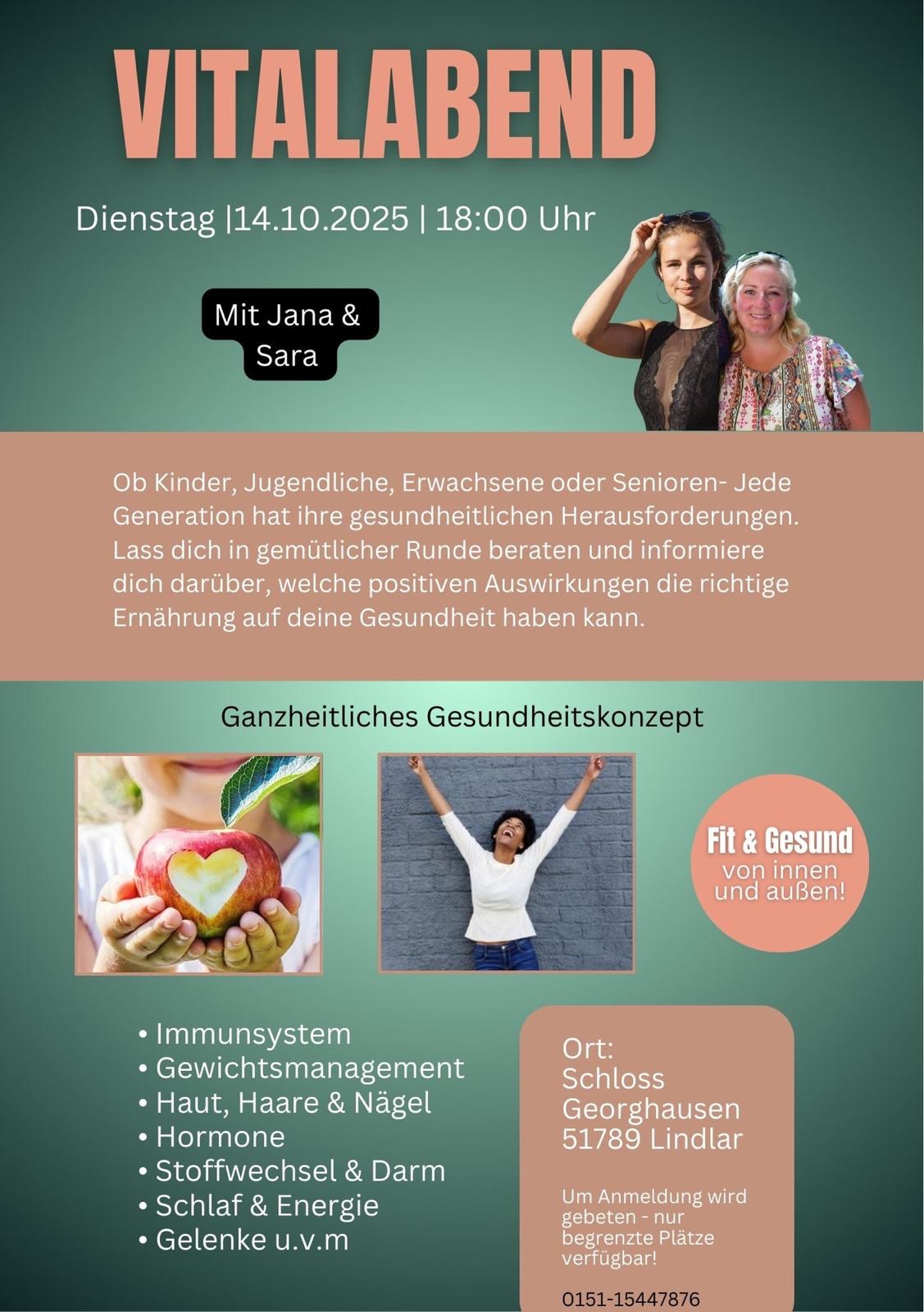 Am Dienstag darauf, den 14. Oktober steht das Thema Gesundheit im Vordergrund. Jana & Sara informieren ab 18:00 Uhr auf einem Vitalabend darüber, welche positiven Auswirkungen die richtige Ernährung auf die Gesundheit haben kann. Bei dem ganzheitlichen Gesundheitskonzept geht es u.a. um das Immunsystem, Gewichtsmanagement, Stoffwechsel und Gelenke. Informationen, die sich mit Sicherheit auch auf das Golfspiel positiv auswirken. Auch hier wird um Voranmeldung gebeten.